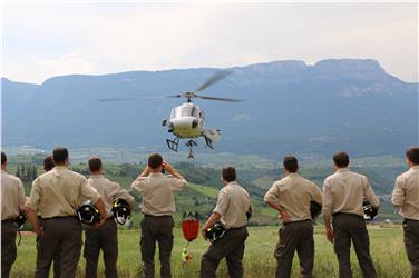- Ultima giornata di corso con esercitazione di pronto intervento di spegnimento incendio boschivo con elicottero sull’area risanata dell’ex discarica di Castelfirmiano (Foto: USP/M.Clara) [JPG 19 KB]