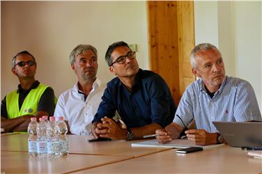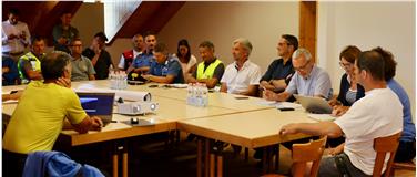 - Kompatscher e Schuler a colloquio con tutti i responsabili della macchina della Protezione civile impegnata in Alta Pusteria (Foto USP) [JPG 15 KB]