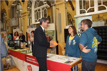 Per la terza volta negli ultimi 4 anni, porte aperte a Palazzo Widmann e nella sede del Consiglio provinciale per la giornata dell'autonomia. Ieri (martedì 5 settembre), dalle 10 alle 18, i visitatori hanno potuto muoversi fra gli stand di una dozzina di associazioni, organizzazioni e istituzioni che si occupano di solidarietà e volontariato in Alto Adige, in Italia e all'estero: dalla cooperazione allo svilluppo alle Botteghe del mondo, dalla Croce bianca ai vigili del fuoco, dall'AIAS all'AUSER, dalle associazioni giovanili al Fondo comuni confinanti. Inoltre, visite guidate nell'ufficio del presidente Arno Kompatscher e nella sala dove si riunisce ogni martedì la Giunta provinciale, per capire più da vicino come funziona la macchina amministrativa della Provincia di Bolzano in un'ottica di trasparenza.