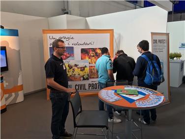 Lo stand dell'Agenzia al Salone dell'emergenza a Montichiari. Foto Agenzia protezione civile