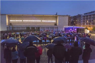 Con una sobria cerimonia di riflessione, accesa in piazza Tribunale a Bolzano l’installazione sul bassorilievo di Piffrader con la citazione di Hannah Arendt.