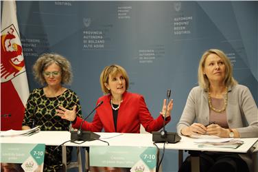 "Crescere, un passo dopo l’altro": è questo il titolo della nuova edizione di "Lettere ai genitori", opuscolo presentato oggi (5 dicembre) a Palazzo Widmann dall'assessora provinciale alla famiglia, Waltraud Deeg, da Helga Mock dell’Agenzia per la famiglia, e da Gudrun Schmid, ideatrice del periodico al quale sono abbonate oltre 27mila famiglie. Dal 2010, anno di inizio della pubblicazione, sono stati sinora pubblicati nove numeri delle Lettere ai genitori incentrati su tematiche che spaziano dal parto sino alla pubertà. "Quello che presentiamo oggi - ha spiegato la Deeg - tratta la fascia d’età compresa tra i 7 ed i 10 anni, un periodo molto delicato e complesso in merito al quale l'opuscolo vuole offrire un’interessante serie di consigli".