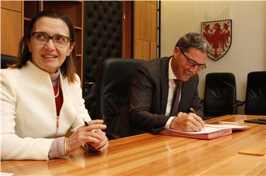 Passa definitivamente (e gratuitamente) alla Provincia l’immobile statale sede degli uffici giudiziari in piazza Tribunale a Bolzano. La scorsa settimana la Giunta provinciale aveva dato l'ok alla firma del verbale di consegna del Palazzo di giustizia, che è stato sottoscritto oggi (6 dicembre) a Palazzo Widmann dal presidente Arno Kompatscher e dalla direttrice regionale dell'Agenzia del demanio, Rosalia Cannada Bartoli. L’immobile ha un valore di inventario di 37 milioni e 970mila euro e acquisendone la proprietà senza alcun esborso di denaro, la Provincia si assume gli obblighi della manutenzione straordinaria e di eventuali ristrutturazioni e ampliamenti. La manutenzione ordinaria rimane invece in capo alla Regione.