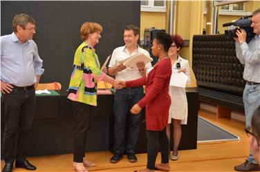 - Consegnati dall'assessora Stocker gli attestati relativi alle competenze elaborati in base al progetti pilota hamet2F dalla Cooperativa sociale AKRAT Foto: USP-Anne Savio [JPG 20 KB]