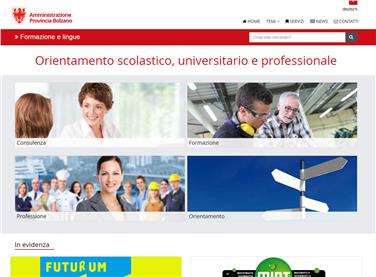 Nell'ambito del processo di rinnovamento e ammodernamento della presenza sul web dell'amministrazione provinciale, la Ripartizione diritto allo studio ha suddiviso la propria homepage in due portali tematici che sono online da questa mattina (27 giugno). Si tratta del portale dedicato a orientamento scolastico, universitario e professionale, che offre informazioni su percorsi di formazione, riconoscimento dei titoli di studio e di abilitazione professionale, nonchè consulenza sulla scelta del percorso più adatto alle proprie esigenze, e del portale dedicato al diritto allo studio, all'interno del quale trovano posto tutte le forme di sostegno finanziario previsto per scolari e studenti, come le borse di studio, ma non solo. In due apposite sezioni, infatti, sono raccolte le sovvenzioni per l'incentivazione alla conoscenza delle lingue e per i soggiorni formativi fuori Provincia di persone adulte.