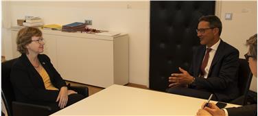 "Il consolato generale degli Usa in Italia è pronto a fare da punto di contatto per le aziende altoatesine interessante a investire o a esportare negli Stati Uniti". Questo il messaggio lanciato dalla console generale Usa in Italia Elizabeth Lee Martinez nei confronti dell’Alto Adige e della sua economia nell’ambito dell’incontro che oggi (20 luglio) l’ha vista protagonista di una visita ufficiale al presidente della Provincia Arno Kompatscher. Il presidente ha introdotto all’ospite la realtà locale facendo cenno alla situazione economica, all’evoluzione storica e alle particolarità del territorio. "E’ importante che le nostre aziende possano continuare a portare sul mercato i prodotti nei quali eccelliamo come quelli delle tecnologie alpine e per la lavorazione del legno. Per questo l’incontro di oggi rappresenta un’occasione importante per confermare la reciproca collaborazione in questo senso, a garanzia di una sempre maggiore espansione delle imprese altoatesine verso il mercato statunitense" ha sottolineato Kompatscher. Un ulteriore terreno di collaborazione fra Alto Adige e Stati Uniti riguarda il turismo, con gli arrivi da oltreoceano che nel 2017 hanno fatto registrare un incremento del 7,2% degli arrivi e del 7,7% delle presenze rispetto al 2016. Della delegazione facevano parte anche John Crosby, console per gli affari politici ed economici, Alessia Pastorutti, political specialist e Camillo Rusconi, digital media specialist del Consolato Usa a Milano.