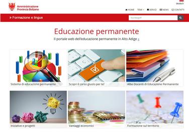 A partire da oggi (martedì 19 settembre) saranno online i nuovi portali web della Provincia dedicati a due tematiche centrali del mondo della formazione: le lingue e l' educazione permanente. Per la prima volta, tutte le informazioni e le offerte riguardanti questi due importanti argomenti, saranno presentati in maniera unitaria e senza alcun tipo di differenziazione linguistica. Per conoscere tutte le opportunità e i dettagli dei due nuovi portali web, gli uffici provinciali che si occupano di educazione permanente e di lingue presenteranno i siti presso i loro stand alla fiera della formazione Futurum, che si apre domani (mercoledì 20 settembre) a Bolzano.
