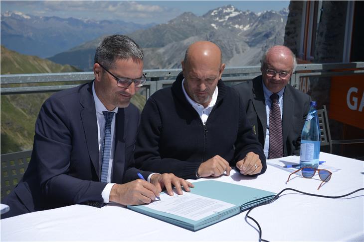 Un protocollo d'intesa tra Provincia di Bolzano e Regione Lombardia che punti a valorizzare il territorio di Passo Stelvio nel rispetto della sostenibilità e della compatibilità ambientale. È quanto sottoscritto oggi (16 luglio) a Passo Stelvio dal presidente Arno Kompatscher e dall'assessore lombardo con delega alle politiche per la montagna, Massimo Sertori, alla presenza dell'assessora altoatesina Maria Hochgruber Kuenzer. La firma, secondo i tre rappresentanti istituzionali, rappresenta la prima tappa di un percorso condiviso che porterà in breve tempo alla costituzione di una nuova società che avrà l’obiettivo di sviluppare una serie di servizi e progetti di valorizzazione dell'area da individuare tramite un lavoro di sinergia fra amministrazioni e operatori locali di entrambe le Regioni.