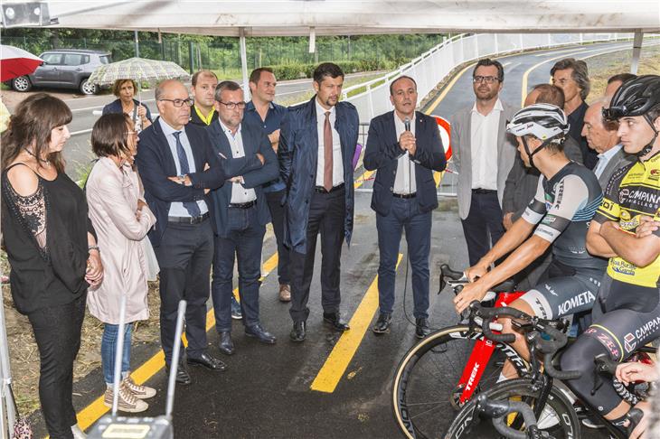 L'assessore Giuliano Vettorato, residente a Laives, ha spiegato che "il nuovo ponte unisce al meglio le due località, ed è frutto della buona collaborazione tra i diversi Dipartimenti dell'amministrazione provinciale e il Comune di Laives che hanno lavorato perseguendo un obiettivo comune: la mobilità alternativa". La buona collaborazione tra Provincia e Comune è stata ribadita anche dal sindaco Christian Bianchi, il quale ha posto l'accento sulla necessità che "sempre più persone si spostino con il trasporto pubblico ma anche con le biciclette, rinunciando all'auto privata", e dal vice-sindaco Giovanni Seppi, che ha parlato di progetto di pregio anche dal punto di vista architettonico.