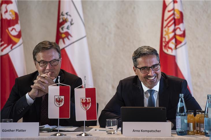 - Il capitano del Tirolo Platter e il presidente Kompatscher durante la seduta congiunta (foto USP/Ivo Corrà) [JPG 46 KB]