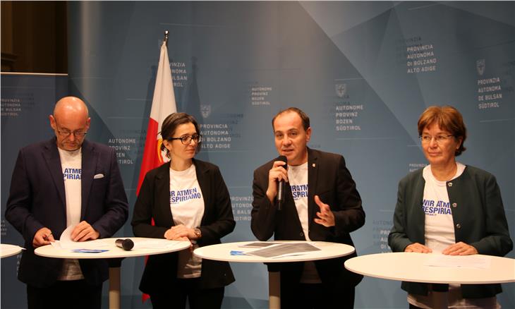 - Hanno presentato assieme la campagna di sensibilizzazione "Respiriamo - savetheair.it insieme per un'aria migliore": da sx a dx, Ruffini, Rohrer, Vettorato, Lorenzini (Foto: ASP/Monika Pichler) [JPG 38 KB]
