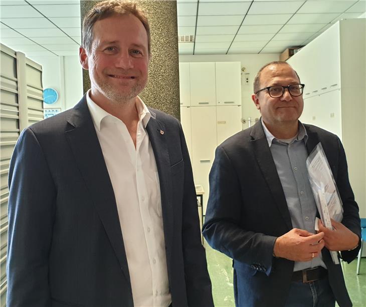 - Assessore Bessone (a sx, con il RUP Stefan Casale): Il nuovo rifugio Petrarca viene realizzato da imprese locali. È importante far lavorare le nostre imprese per rimettere in moto l'economia. (Foto: ASP/Anna Pitarelli) [JPG 54 KB]