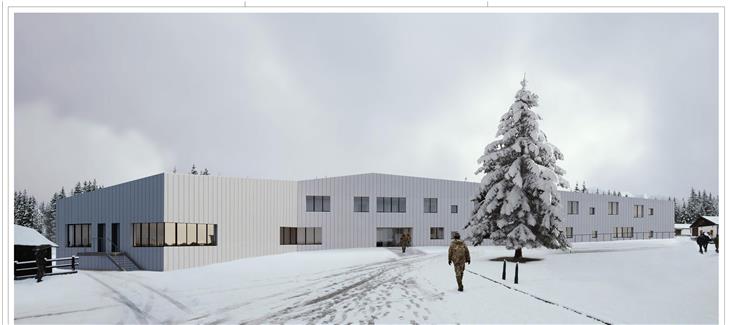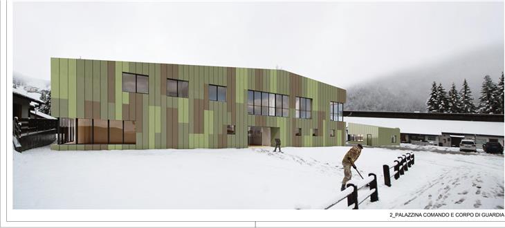 - Nel rendering il futuro edificio del Comando che la Provincia realizzerà presso la Caserma Tempesti a Corvara. (Claudio Lucchin&architetti associati Angelo Rinaldo Daniela Varnier) [JPG 31 KB]