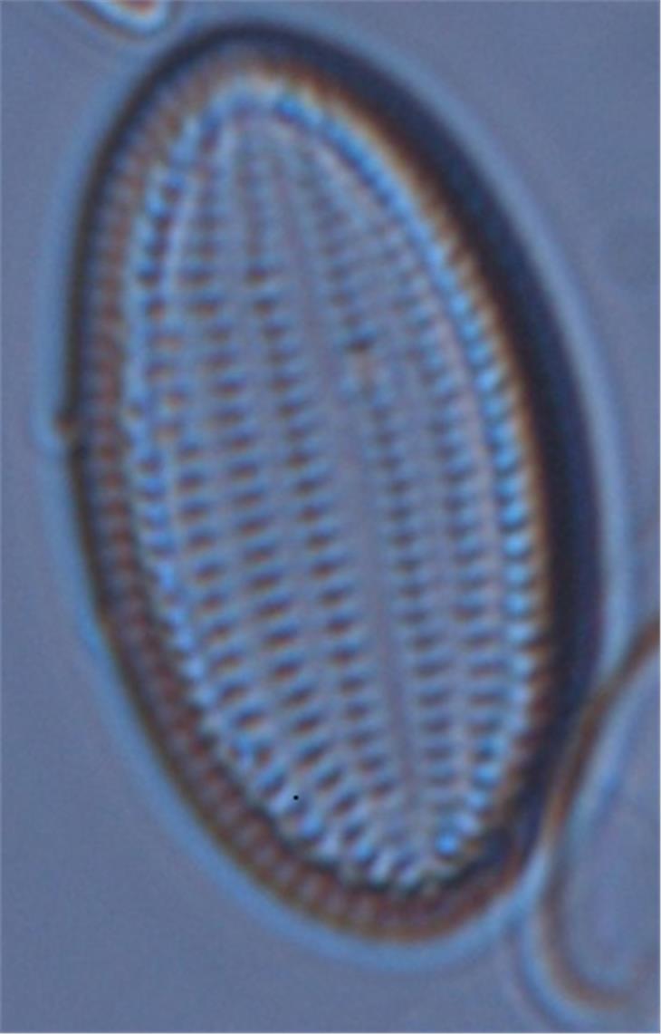 - Cocconeis euglypta, una diatomea che si trova spesso nel lago di Caldaro (Foto: Agenzia ambiente e tutela clima, Renate Alber) [JPG 52 KB]