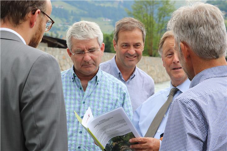 Sopralluogo al Rio Scaleres (da sx) Schuler, Walder, Pollinger, Pramstraller, Tauber. Foto: Agenzia per la Protezione civile/mac