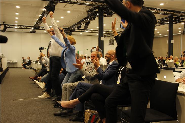 - L'esultanza della delegazione altoatesina a Losanna (Foto USP/mb) [JPG 57 KB]