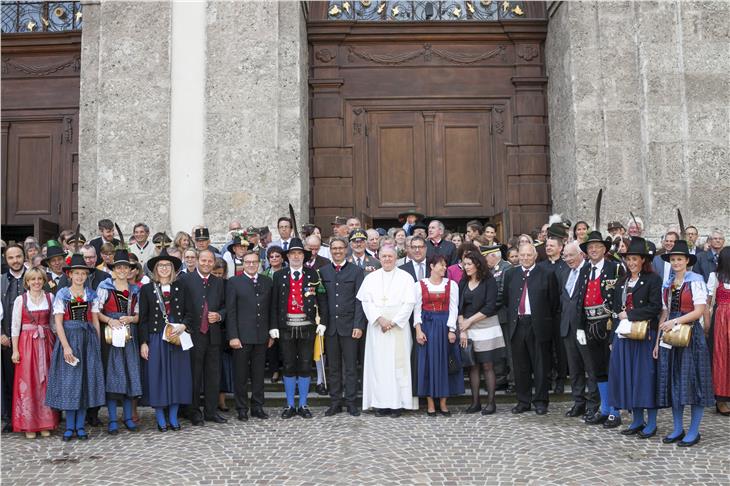 - Ricevimento: foto di gruppo davanti alla chiesa dei Gesuiti - Foto: Land Tirol/Die Fotografen [JPG 81 KB]