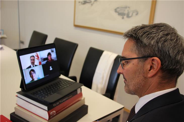 Violenza di genere e prevenzione del fenomeno al centro della videocall tra il presidente della Provincia Arno Kompatscher, assessore provinciale per le pari opportunità, e Monika Hauser di "medica mondiale". (Foto: ASP/Silvana Amistadi)