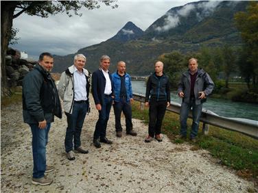 "Die beste Investition in Bezug auf die Sicherheit der Bevölkerung", unterstreicht Landesrat Arnold Schuler, "ist jene in die Vorbeugemaßnahmen". Mit dem Direktor der Agentur für Bevölkerungsschutz Rudolf Pollinger hat er sich ein Bild von den Arbeiten der Regulierungs- und Schutzbauten an den Wasserläufen vor Ort verschafft.