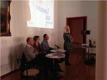 - Das Projekt Frame/out wurde heute bei einer Pressekonferenz vorgestellt – (v.l.n.r.) Hannes Obermair, Marlene Huber, Oscar La Rosa, Sylvia Hofer. Foto: LPA [JPG 13 KB]