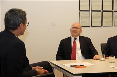 Auch über die Geschäftsbeziehungen zwischen Südtirols Unternehmen und den USA wollte Reeker Näheres erfahren. Der Landeshauptmann hat dem Konsul zudem von der erfreulichen Arbeit der IDM und der Aufbauarbeit der frühren EOS in puncto Internationalisierung erzählt.