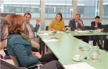 - Landesrätin Christine Baur und Landesrat Bernhard Tilg (3. und 2. v.r.) brachten bei dem heutigen EVTZ-Treffen zum Thema Gesundheit und Soziales ihre Ideen für eine verstärkte Zusammenarbeit der drei Länder ein. Foto: LPA/Barbara Franzelin [JPG 19 KB]