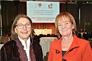 Im Mittelpunkt der 2. Tiroler Landesfrauenversammlung im Congresspark in Igls stand das Thema "Lebensraum Gemeinde – Frauen auf dem Land." Ausgangslage für die Diskussion waren dabei aktuelle Zahlen, Daten und Fakten über die Frauenpräsenz in der Politik vor Ort: In Südtirol werden knapp 9 Prozent und in Tirol knapp 6 Prozent der 116 bzw. 279 Gemeinden von Bürgermeisterinnen geführt, es gibt 23 bzw. 19 Prozent Vizebürgermeisterinnen und 35 bzw. 25 Prozent Gemeinderätinnen. Die Diskussion um die vielfältigen politischen Herausforderungen für diese Frauen auf dem Land wurde von einem Impulsreferat der ehemaligen Landesrätin für Umweltschutz in Tirol und ehemaligen Europaparlamentarierin Eva Lichtenberger ergänzt. Die Bürgermeisterin von Lienz und Tiroler Landtagsabgeordnete Elisabeth Blanik, die Südtiroler Parlamentarierin Renate Gebhard, die ehemalige Gemeinderätin von Stanzertal Kathrin Hörschlager, die Bürgermeisterin von St. Martin in Passeier Rosmarie Pamer, die Bürgermeisterin von Jungholz Karina Konrad und die Vizebürgermeisterin von Rodeneck Irgmard Santer Testor berichteten im Anschluss über ihre konkreten Erfahrungen mit Projekten für Frauen auf dem Land, wie etwa die Arbeitsgenossenschaften Sinfotel und die ARGE in Rodeneck in Südtirol.
