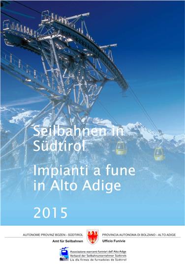 Die Broschüre „Seilbahnen in Südtirol 2015“, die das Landesamt für Seilbahnen gemeinsam mit dem Verband der Seilbahnunternehmer herausgegeben hat, gibt es kostenlos im Landesamt für Seilbahnen, Silvius-Magnago-Platz 3 in Bozen (Tel. 0471 414600). Man findet sie auch online unter: http://www.provinz.bz.it/mobilitaet/service/publikationen.asp