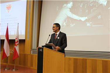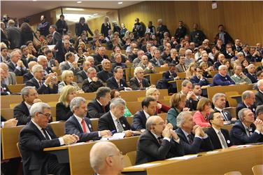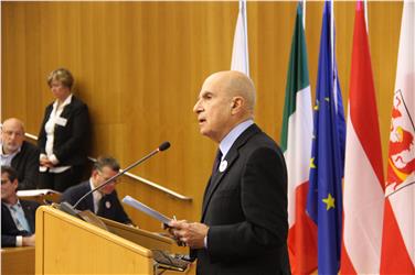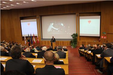 Der Hausherr, Universitätspräsident Bergmeister, verwies in seinem Grußwort auf Wilhelm Leibniz, dem Vordenker Europas, der eigene Sprache und Kultur als Werte definiert hatte. Bergmeister unterstrich, dass in Europa Minderheiten als Mehrwert erkannt werden sollten. Der Vizerektor der Universität Innsbruck Bernhard Fügenschuh berichtete bei seiner Begrüßung über die enge Zusammenarbeit der Universitäten im Sinne der Europaregion.