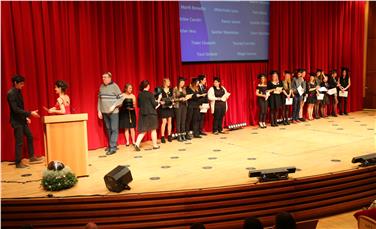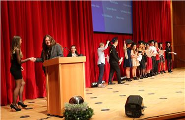 - Zur Diplomverleihung wurden alle Abschlussklassen auf die Bühne gebeten. Foto: LPA/me [JPG 20 KB]