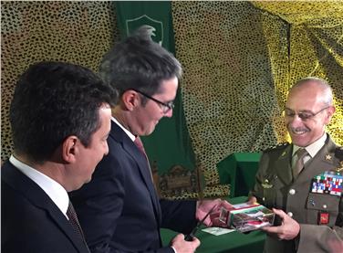 - LH Kompatscher nimmt von General Errico den Schlüssel für die Mercanti-Kaserne in Meran entgegen. Foto: LPA [JPG 26 KB]
