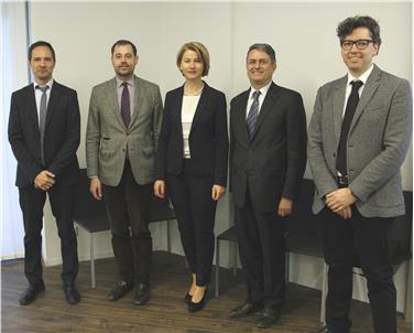 - V.l.:: Bereichsdirektor in der AOV Gianluca Nettis, Direktor AOV Thomas Mathà; von Alperia-Energy: Präsidentin Pualina Schwarz, Generaldirektor Andrea Lanzingher, Corporate-Sales-Verantwortlicher Markus Federspieler. Foto: LPA/mgp [JPG 17 KB]