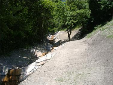 Die Arbeiten im Oberlauf haben sich laut Bauleiter Pramstraller als sehr kompliziert erwiesen. Die Baustelle lag im steilen und instabilen Gelände und stellte somit nicht nur für die Arbeiter eine große Herausforderung dar, sondern auch für die Lenker der schweren Maschinen, die zur Baustelle zu befördern waren.