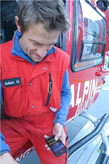 - Catores-Bergführer Adam Holzknecht verfolgt das Wetter auf der Wetter app des Landeswetterdienstes./Foto A. Holzknecht [JPG 43 KB]