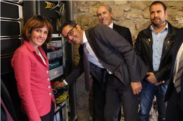 Die Firma LignoAlp in Deutschnofen wurde am 22. September als erster Betrieb an die neue Glasfaser-Verteilerstation im Rathaus der Gemeinde angeschlossen. Über die Anbindung an das schnelle Internet freute sich insbesondere Walter Capovilla, der Gesellschafter der im Holzbau tätigen Firma, welche Betriebstandorte in Brixen und Deutschnofen hat. "Eine schnelle und stabile Verbindung ist für uns unerlässlich, um die großen Datenmengen von Kunden und Planern bewältigen zu können", sagte er bei der Eröffnung der neuen Verteilerstation. Für den Ausbau des Breitbandnetzes hat die Gemeinde Deutschnofen rund eine Million Euro investiert. Damit haben derzeit rund 50 Betriebe und 30 Haushalte die Möglichkeit, sich an das Glasfasernetz anzuschließen. "Die Verwirklichung eines landesweiten, leistungsfähigen Breitbandnetzes ist und bleibt eine strategische Priorität, als wesentliche Voraussetzung für die Digitalisierung und Wettbewerbsfähigkeit unseres Landes", unterstreicht die IT-Landesrätin. "Mit dem diesjährigen Programm haben wir weitere wichtige Schritte gesetzt, die uns diesem Ziel näherbringen."