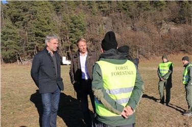 Zivilschutzlandesrat Schuler auf Lokalaugenschein bei Brand in Kohlern
