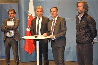 - Kriterien und Vorgutachten für Almerschließungesprojekte vorgestellt (v.li.): Abteilungsdirektor Profanter, Landesräte Schuler und Theiner, Amtsdirektor Kasal. Foto: LPA/FP [JPG 18 KB]