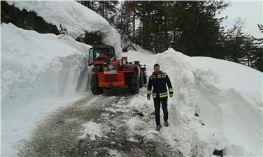 Die Schneehöhe variiert zwischen eineinhalb bis über drei Meter. Die Einsätze zum Freilegen der Straßen gestalten sich aufwändig, da viele umgestürzte Bäume abgeschnitten werden müssen und der Straßenverlauf in manchen Abschnitten mit Sonden abgesteckt werden muss.