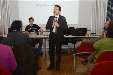 Zahlreiche Interessierte kamen am 8. Februar ins Bürgerzentrum "Finetto" im Statadtviertel Don Bosco in Bozen zur Vorstellung des Projekts "Negozi e Cultura/Kulturläden". Der Landesrat für Italienische Kultur, Christian Tommasini, hat dabei unter anderem die Grundidee hinter dem Konzept erklärt. Ebenfalls anwesend war der Vorsitzende des Stadtviertelrates, Alex Castellano. Eingeladen waren unter anderem auch die Präsidenten der Genossenschaften sowie Kultur-, Bildungs- und Jugendvereine und die Vertreter der Bibliotheken. Insgesamt sind etwa vierzig Personen der Einladung von Landesrat Tommasini gefolgt.