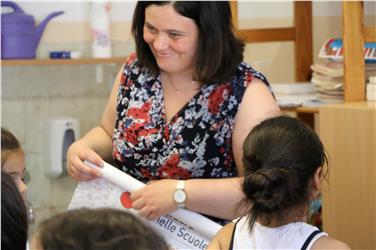 - Kindern gesunde Ernährung mit Obst und Gemüse schmackhaft gemacht hat diese Lehrerin der ersten Klasse der Grundschule Haslach im Rahmen des europäischen Programms "Frutta nelle scuole". Foto: LPA/Maja Clara [JPG 18 KB]
