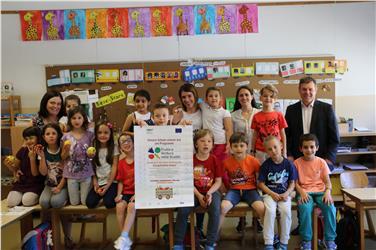 - Obst und Gemüse kennengelernt und in Gemeinschaft gerne gegessen: zwei erste Klassen der Grundschule Bozen-Haslach haben sich in diesem Schuljahr am EU-Projekt "Frutta nelle scuole" beteiligt. Foto: LPA/Maja Clara [JPG 18 KB]