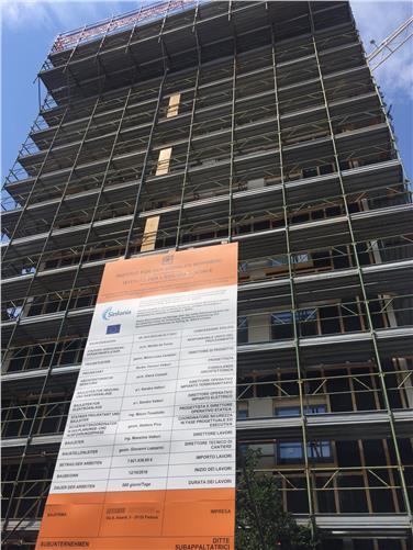 Es sei dies, lobte Landesrat Tommasini bei der Baustellenbesichtigung, ein bedeutendes und innovatives Beispiel von energetischer Sanierung an veralteten Infrastrukturen. Dank der Investitionen der Landesverwaltung und der Kompetenz des WoBI könnten innovative Konstruktionstechniken von höchstem Standard zum Wohle der Bürger angewandt werden. Dieser Einsatz, unterstrich Landesrat Tommasini, sei keineswegs selbstverständlich. WoBI-Präsident Schweigkofler verwies darauf, dass die Sanierungsarbeiten durchgeführt werden, während die Bewohner in den Wohnungen bleiben. Diese wurden vorab informiert und stehen in ständigem Austausch mit dem Wohnbauinstitut und der Baufirma. Nach der Sanierung, erklärte Ingenieur Minotti vom WoBI, sinkt der Energieverbrauch von derzeit 180 Kilowattstunden pro Quadratmeter pro Jahr auf 20 Kilowattstunden pro Quadratmeter im Jahr. Für die Wiedergewinnung der Dachgeschosse werden innovative Techniken eingesetzt, mit vorgefertigten Lamellen und Wänden aus Holz aus dem Fleimstal.