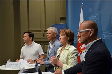 Die Details zu dieser Initiative wurden bei der heutigen Pressekonferenz (21. Juni) von Arbeitslandesrätin Martha Stocker, dem Direktor der Landesabteilung Arbeit Helmuth Sinn, dem Präsidenten des Paritätischen Komitees im Bauwesen Claudio Corrarati und dem Vizepräsident Maurizio d'Aurelio und der neuen Mitarbeiterin des Komitees, welche die Baustellen besuchen wird, Teresa Buffa vorgestellt.