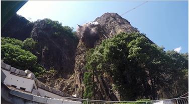 Die Sprengung erfolgte am Samstag, 22. Juli: Mit gefährlichen und minutiös bis ins kleinste Detail geplanten Sprengarbeiten wurde der Gesteinsblock ohne Schäden entfernt. Dabei arbeiten alle Mitglieder der Task-Force zusammen. Nach der Sprengung wurde an der Felswand von Hand nachgesäubert. Nun soll die im Anschluss angebrachte Vernetzung der über 70 Meter hohen Felspartie mittels Stahlnetzen die Sicherheit des Areals und der Gebäude garantieren.