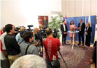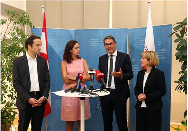 Die Österreichische Ministerin für Familien und Jugend, Sophie Karmasin, Landeshauptmann Arno Kompatscher, Landesrätin Waltraud Deeg und Landesrat Philipp Achammer haben heute (28. August) nach einem Austausch eine Pressekonferenz im Landhaus 1 gehalten.