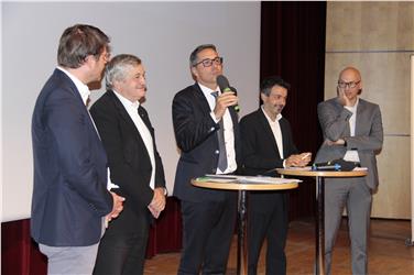 Ausserdorfer, LR Mussner, LH Kompatscher, Dejaco und Burger beantworteten die Fragen der Bürger (FOTO: LPA/Rman Clara)