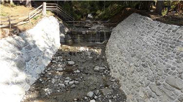 Im Unterlauf des Rudlgrabens, einem Zubringer des Pidigbaches in der Gemeinde Welsberg-Taisten, sind sowohl die Sperren als auch die Ufermauern aus Mauerwerk sanierungsbedürftig. "An zahlreichen Stellen haben sich Steine aus dem Verbund gelöst und bei vielen Sperren fehlt die Verfugung der Steine", erklärt Projektant und Bauleiter Thomas Gamper. Seit zwei Jahren wird der Rudlgraben einer umfangreichen Sanierung unterzogen.