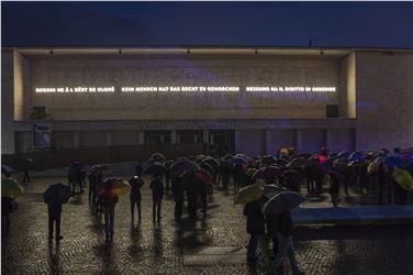 Nach der Einrichtung des Museums am Siegesdenkmal sei mit der Lichtinstallation am monumentalen Mussolini-Relief des Südtiroler Bildhauers Hans Piffrader ein weiterer Meilenstein für eine gemeinsame und verbindende Aufarbeitung der Geschichte Südtirols gesetzt worden. "Das Relief ist damit von einem faschistischen Denkmal zu einem Mahnmal geworden", betonte Landeshauptmann Kompatscher, "das an die Folgen bestimmter Ideologien erinnert und die Werte der Menschlichkeit, der Freiheit und der Demokratie hochhält". Die Erinnerungsfeier am heutigen Abend habe den Anwesenden zudem die Entwicklung vor Augen geführt, die sich in diesem Land vollzogen habe.