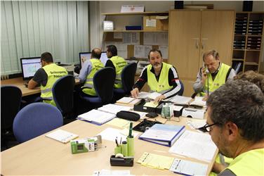 - Leiter Stab des Lagezentrums Günther Walcher (re.) und Berufsfeuerwehr-Offizier Christian Auer im Lagezentrum der Berufsfeuerwehr. Foto: LPA/Maja Clara [JPG 17 KB]