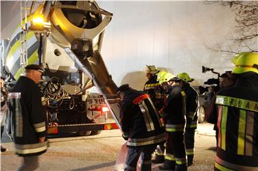 - Betonmischmaschine bringt den Sand, der in die Sandäcke abgefüllt wird, zum Margarethenbach nach Siebeneich. Foto: LPA/Maja Clara [JPG 22 KB]